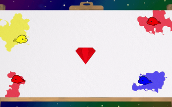 The players control four seal painters who can mix their primary colors to get secondary colors. The goal is to survive as long as possible by being the color of the gem in the center by the time the round ends!